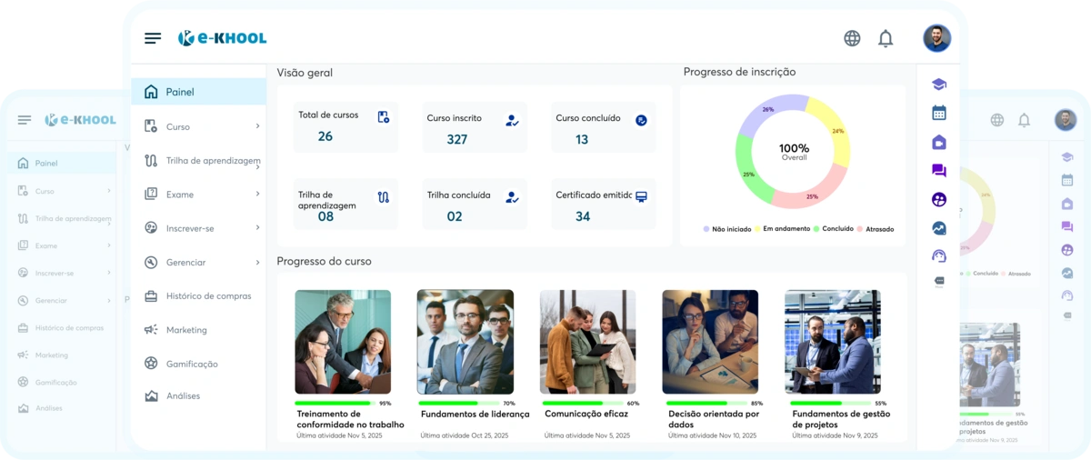Integre-se perfeitamente com as suas ferramentas preferidas para uma experiência de aprendizagem unificada. O software e-KHOOL LMS conecta-se sem esforço com ecossistemas corporativos e educacionais.